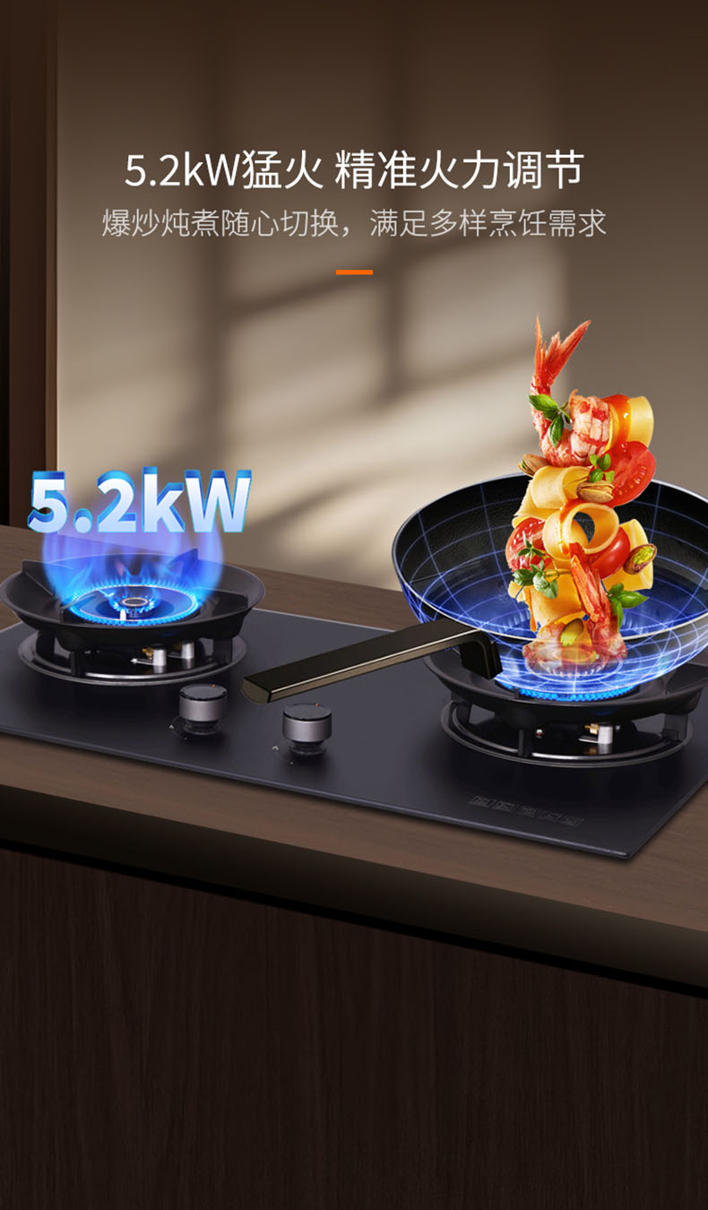 • 5.2KW猛火,精準火力調節,爆炒燉煮隨心切換