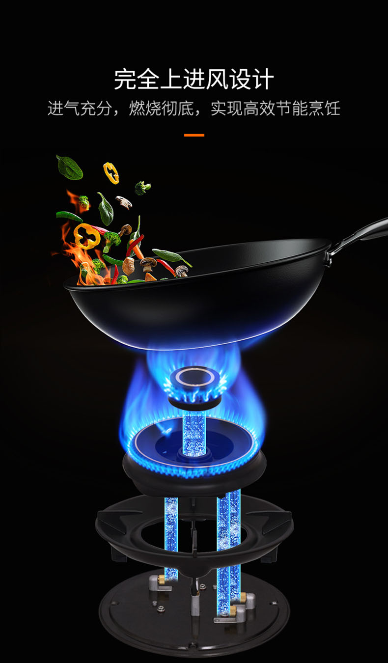 • 全上進風設計,補氧充分,燃燒徹底,實現高效節能烹飪